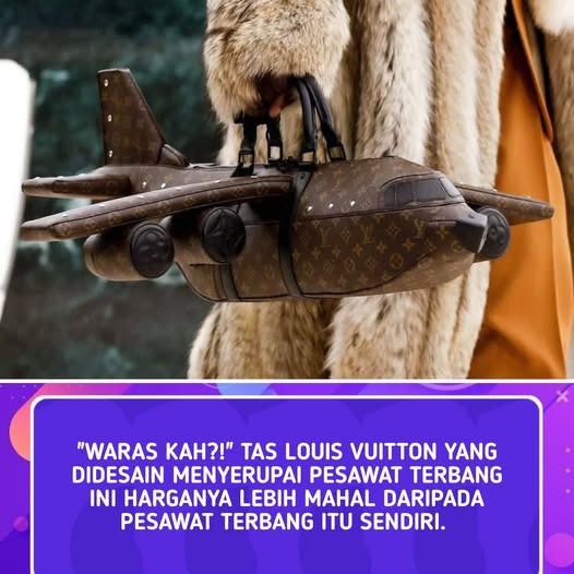 Louis Vuitton pernah menarik perhatian dunia fashion dengan sebuah tas berbentuk pesawat terbang lengkap dengan detail sayap, jendela kokpit, ekor, dan mesin — seperti model Boeing 747. Desain ini juga dibalut dengan kanvas monogram LV klasik, tali bahu, luggage tag, dan dust bag, sehingga terlihat seperti karya seni sekaligus aksesori mewah.